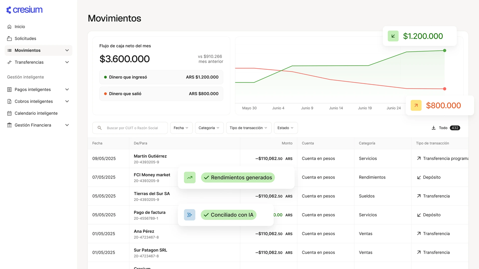 Cresium es una plataforma financiera todo-en-uno diseñada para PYMES en Argentina. Facilita la gestión de transacciones, inversiones y préstamos en un solo lugar.